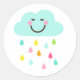 Niedliche Wolke mit bunten Regentropfen Runder Aufkleber