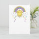 Niedliche Wolken und Sonne laden zu einer Geburtstagsfeier ein. Handgezeichneter Stil.