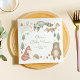 Geschlechtsneutrale Babyduschnapkins mit handillustrierter Waldlandschaft mit Bäumen, Blume, Pilzen, Bären, Bären, Raccoon, Eichhörnchen, Vögeln, Fuchs und Igel.
