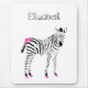 Ein niedliches, rosa und schwarzes Mousepad mit einem kleinen Zebra mit einem gürlich rosa Bogen und hübschen, rosa Hufen. Dieses trendige Design nur für junge Mädchen kann durch ihren Namen personalisiert werden.
