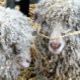 Ein fotografisches Design von zwei sehr niedlichen angora Ziegen mit Strohdekoration.