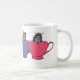 Diese Kaffeemaschine-Tasse zeigt in einem gepackten Stil vier graue und braune Zuckersegler, die in hellblauen, grünen, lila und korallenfarbenen Teebechern eingefärbt sind. Das ist ein tolles Geschenk für Besitzer von Heimzuckerseglern.