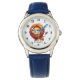 Kinderuhr aus Edelstahl mit blauem Lederarmband