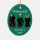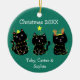 Dieser niedliche Weihnachtsschmuck hat einen zeichn von 3 schwarzen Kätzchen, die in Weihnachtsbeleuchtung eingewickelt sind. Dieses hübsche, grüne Urlaubssornament ist für Freunde oder Familienmitglieder, die ihre drei niedlichen Kätzchen Lieben, individuell gestaltet. Monogramm ihre Namen in Weiß unter den bezaubernden Katzen.