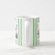 Diese niedliche Tasse weist schlanke, grüne und weiße Streifen auf. Kann durch Hinzufügen von zwei speziellen Fotos angepasst werden.