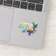 Ein niedlicher Dino-Aufkleber könnte einen kleinen, chubby-Dinosaurier mit großen, glitzernden Augen und einem fröhlichen Ausdruck aufweisen. Die Dino ist pastellfarben, wie Minzgrün oder hellrosa, mit winzigen Stubbäumen, runden Wangen und einer spielerischen Pose - vielleicht mit einer Blume oder blühenden Blasen. Es kann auch lustige Details wie einen herzförmigen Schwanz oder ein winziges Party tragen, das noch mehr Charme verleiht!