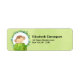 Adressieren Sie Labels mit einer Illustration eines kleinen Affen, der hinter einem grünen Busch herausguckt. Umgeben von einem Kranz tropischer Blätter. Set auf grünem Aquarell.