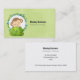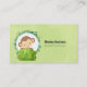 Visitenkarten mit einer Illustration eines kleinen Affen, der hinter einem grünen Busch herausguckt. Umgeben von einem Kranz tropischer Blätter. Set auf grünem Aquarell.