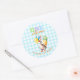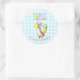 Niedlichen eine alberne Gans 1. Geburtstagsthema, Kindergeburtsrundaufkleber mit einer niedlichen Aquarellgans mit einem Party Hut und Ballons auf einem weich blauen Gingham kariert Hintergrund.