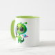 Niedlicher Alien mit Laserpistole und einem Planet Tasse