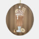 Eine niedliche Verzierung mit einem Entwurf eines altmodischen Schokoladenmilchshaken oder Malz, wenn Sie auf ihm bevorzugen. Set gegen einen Hintergrund der schokoladenbraunen Streifen mit einem weißen Band. Einige Plätzchen schließen die Szene ab. Addieren Sie Ihre ersten und letzten Initialen, um sie zu personifizieren. Macht ein großes Geschenk für das chocoholic.