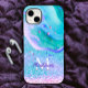 Niedlicher Aqua-Glitzer lila Marmor-Art-Monogramm Case-Mate iPhone Hülle