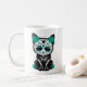 Dieses niedliche Ausrüstungsbeschreibungen, die ein kleines Kätzchen mit Tag der toten Muster verzierte. Rote Rosen erscheinen in den Katzenohren, während ein Stern mit fünf Punkten mitten in der Stirn sitzt. Das schwarze Kätzchengesicht ist gemaltes Weiß und wird mit Wirbel und Punktmustern in der Tradition des Tages der toten Zuckerschädel verziert. Weiße Knochen und ein Brustkorb erscheint auf dem Katzenkörper, der ihm einen skeleton Blick gibt. Der sortierte Haupt- und kleine Überkörper zusammen mit den Details im Pelz schaffen eine schöne Kombination eines Cartoon und des realistischen Blickes. Dieser einzigartige und entzückende Kätzchenentwurf ist ein entzückender Tag des toten Entwurfs.