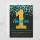 Ein niedlicher und lustiger Aquamariner Green Gold Glitzer Black Confetti 1. Geburtstag Party Einladung