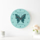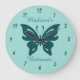 Niedlicher Aquamariner Schmetterling Custom Girl's Große Wanduhr