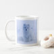 Eine Tasse mit einem Foto von einem weißen arktischen Fuchs. Eine winterlich schneebedeckte Landschaft umgibt dieses reizende Geschöpf.