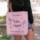 Niedliche, rosafarbene Taschen für Ihren Junggeselinnen-Abschied, die zeigen, wie sich Party in einer Cocktail-Martini-Brille sonnen, Retrostars, "Babe Squad" in einer Retro-Schrift, die Namen Ihrer Gäste und die Lage des Party oder andere Texte in schlichter moderner Typografie.