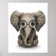 Niedlicher Baby Elephant mit Reading Glasses White Poster