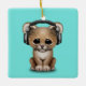Niedlicher Baby-Löwe-tragende Kopfhörer Keramikornament