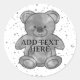 Niedliches Baby trägt Aquarell. Weißer Hintergrund mit grauem Spritzer. Maßgeschneiderte Aufkleber für Dekoration und Kennzeichnung. Geschenkidee für Bärenliebhaber jeden Alters.