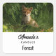 Produktaufkleber für Kerzen, Seifen, Küchen usw... mit einem Foto eines niedlichen kleinen Babyfuchs mit rot-weißem Fell. Umgeben von üppig grünen Blätter und Gräsern.