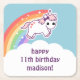 Super niedlicher Baby Unicorn, der in die Luft mit Scheinregenbogen springt. Personifizieren Sie mit Ihrem eigenen Text.