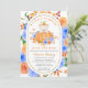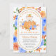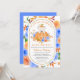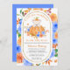 Dieser niedliche kleine Bär, der sich aus einem Kürbis stößt, nimmt die Bühne in der Mitte auf diese sehr hübsche Herbstdusche. Er trägt sogar das Kürbistop als Hut. Der Kürbis ist von blauen Blumen und goldenen Herbstblättern umgeben. Der Satz "Ein kleiner Kürbis ist unterwegs" umgibt das süße Bild. Die Details der Babydusche folgen. Der ovale goldene Rahmen ist von blauen und orangefarbenen Blume umgeben. Die Einladung zurück ist blau. Sie können diese Farbe und den gesamten Text ändern, um sich mit Ihrem Baby Dusche Party zu koordinieren. Nachricht (Ich bin Nelda), wenn Sie Hilfe mit irgendetwas brauchen.