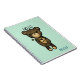 Ein Wendelheft mit einer einfachen Abbildung eines braunen Cartoon mit einer gelben Farbigkeit. Hallo geschrieben über seinem Kopf. Personalisieren mit einem Namen.