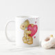 Eine niedliche raggedy teddybear Holding ein großes rosa Herz und wenig Herzen punktierten herum - eine super niedliche Spritzpistolenmalerei für alle Kinder - und Erwachsene, die Liebebären!