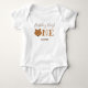 Ein Outfit für den ersten Geburtstag Ihres Babys. Das Farbschema des Bodysuit ist weiß und braun mit dem Wort "Eins" in großen Buchstaben, wobei der erste Buchstabe des Wortes eine Darstellung der Bärenfläche darstellt. Einfach, passen Sie dieses Outfit, fügen Sie es in Ihren Warenkorb, und glücklicher Geburtstag zu Ihrem wunderbaren Baby! Niedlicher Bärenname Erstgeburt Baby Bodysuit Holidayday Design | ©Melissa Patton - Künstler/Illustrator