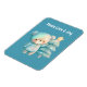 Flexibles Magnet mit einer ansprechenden Abbildung. Ein gemütlicher Bär mit Sternen und Glitzern in seinem Fell. Stehend neben einem Weihnachtsbaum. Pastellblau-grün. Whimsical und niedlich.
