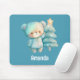 Mousepad mit einer hübschen Abbildung. Ein gemütlicher Bär mit Sternen und Glitzern in seinem Fell. Stehend neben einem Weihnachtsbaum. Pastellblau-grün. Whimsical und niedlich.
