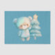 Gewebepapier mit einer hübschen Abbildung. Ein gemütlicher Bär mit Sternen und Glitzern in seinem Fell. Stehend neben einem Weihnachtsbaum. Pastellblau-grün. Whimsical und niedlich.