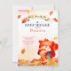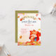 Dieses Design zeigt Herbstfallelemente mit roten, orangefarbenen und gelben Blätter mit einem niedlichen Eichhörnchen mit Eichel. Ideal für ein Party mit Baby- oder Jungendusche!
