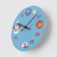 Eine Uhr mit einem niedlichen und farbenfrohen Baseballthema! Es verfügt über einen Baseball-Helm, Baseball, Mitt, Mütze, Stern und Baseball-Tee an verschiedenen Stellen. Ein tolles Dekorationsstück für ein Jungen-Zimmer, wenn es ein blaues Farbthema ist oder der Junge Baseball liebt!