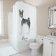 Niedlicher Basenji-Hund in Schwarz-Weiß-Schrift un Duschvorhang