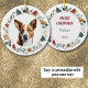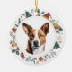 Hier ist ein niedliches personalisiertes Ornament für alle, die einen kleinen Basenji-Hund Lieben. Die Vorderseite hat ein schönes Aquarellbild eines braunen und weißen Basenji-Hundes. Das Hundeporträt ist in einem farbenfrohen Zirkenkranz gerahmt, der aus verschiedenen Holiday-Bildern besteht, darunter ein Schneemann, Glocken, Bonbons, Strumpf, Heilige und vieles mehr! Die Rückseite des Ornaments hat das gleiche Kranzbild mit einem Weihnachts- und Neujahrsgruß. Stellen Sie sicher, dass Sie das benutzerdefinierte Textfeld für den entsprechenden Namen und das entsprechende Jahr aktualisieren. Und sehen Sie mehr Hundebilder und Produkte im Dog Village.