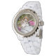 Ein junger Welpen-mit Augen Tricolor-Beagle-Welpe sitzt in einem Milchturm admist rosa Blume Der Beagle ist eine szenthunde Hunderasse mit einem sanften Temperament. Ein niedliches Hündchen Foto von Katho Menden. Diese Kristall-Uhr mit Wählplatte für Frauen ist eine Geschenkidee für Hundefreunde. http://www.zazzle.com/kathom_photo Wenn Sie ein Design sehen, das nicht auf Ihrem gewünschten Produkt erhältlich ist, zögern Sie bitte nicht, mich über meinen Shop zu kontaktieren und ich werde Ihnen gerne das Produkt für Sie erstellen.