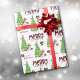 Das wiederholte Muster auf diesem niedlichen Weihnachtsverpackungspapier ist ein Bild eines bezaubernden Beagle-Hundes, der eine rot-weiße Weihnachtsmannmütze trägt. Der Hund sitzt neben einem geschmückten Weihnachtsbaum unter hellen Geschenkpackungen. Ein Stiervogel landet auf dem Baum dahinter. Stilisierter, roter und schwarzer Büffel karierter Text sagt MERRY CHRISTMAS", und Ihre eigene Unterschrift ist in zwei Bereichen für Sie individuell.
