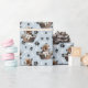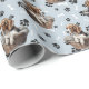 Ein bezaubernder, kleiner Beagle-Welpe, der in einem Korbkorb liegt, ist das Merkmal dieses jeder Anlass Geschenkpapier. Das Portrait ist inmitten eines Musters aus schwarzen Pfoten und weißen Knochen, und wird auf einem silberblauen Hintergrund wiederholt. Ideal für jeden Beagle Hundeliebhaber!