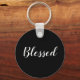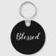 Gesegnet Schwarz-Weiß-benutzerdefinierte Skriptkalligrafie niedlichen Schlüsselanhänger. Elegantes, modernes Design. Anpassbarer Text.