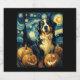 Niedlicher Berg Hund Halloween Kürbislaterne Pumpkin Face Starry Night Van Gogh Style