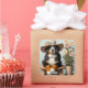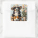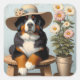 Niedlicher Berner Hund mit Hut und Blume Quadratischer Aufkleber