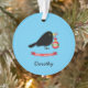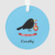 Dieses Design zeigt einen niedlichen Blackbird mit einem Weihnachtsball, der an seinem Becken hängt. Der Ball ist rot mit einem grünen horizontalen Streifen und einer Schneeflocke und ist an einem roten Band befestigt. Er ist dabei, seinen Weihnachtsbaum zu schmücken. Die Szene wird durch ein rotes Banner Gruß "MERRY CHRISTMAS" ergänzt. Personalisieren Sie es mit Ihrem Namen, Monogramm oder benutzerdefinierten Text.