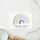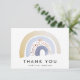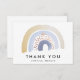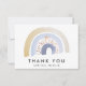 Moderne Regenbogen-Dankeschön-Karten mit einem Aquarellregenbogen in Blau-, Braun- und Goldtönen, unten in schwarzer Schrift dargestellt mit "Danke". Personalisieren Sie den Regenbogen Dankeschön Karte durch Hinzufügen Ihres Namens oder benutzerdefinierten Text. Die Rückseite der Karte ist leer, mit viel Platz für Ihre getippte oder handgeschriebene Dankeschön-Nachricht. Die Aquarell Regenbogen Dankeschön-Karte ist ideal für Babyduschen, Geburtstagspartys und vieles mehr!