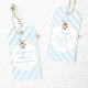 Mit dieser raffinierten, blau gestreiften Baby-Strip-Dankeschön-Anhänger, die den Charme Ihrer klassischen Baby-Preppy-Dusche verstärken, können Sie den Charme Ihrer klassischen Babydusche steigern. Diese Vintag inspiriert Tags mit einem eleganten Teddybär, der den blauen Ballon hält, verleihen Ihren Vorlieben eine Touch an Eleganz und machen sie noch unvergesslicher.