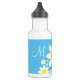 Diese bezaubernde Wasserflasche ist mit weißen Blume mit blauem Hintergrund und extravaganter Schrift für die Personalisierung ausgestattet.
