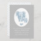 Niedlicher grauer Elefant Mutter und Baby Boy Dusche Einladung. Es zeigt eine Elefantenmutter mit ihrem Baby und zwei blaugraue Herzen in einem weißen ovalen Rahmen. Dein Text ist grau. Auf der Rückseite befindet sich ein Korallenpolka-Punktmuster.
