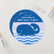 Eigener Geburtstag. Ein niedlicher Blauwal schwimmt durch ein modernes Design welliger Ozeanwellen in Blautönen. Über ihm sind blaue und weiße Polka Punkte und ein massiver blauer Himmel. Auf einer einzigartigen Runde laden Sie ein, Aufmerksamkeit zu erlangen und die Kinder zu begeistern. Niedlich für jeden kleinen Jungen oder Mädchen. Personalisieren Sie einfach Ihre Formulierung, einschließlich des Geburtstagsjahres auf der Rückseite. Für Informationen zu Speisen, Spielen oder anderen Informationen steht ein extra Line-Service zur Verfügung. Farbenfroh, lustig und skurril. Bitte geben Sie Ihren Nachnamen in die UAWG ein, damit die Gäste den Nachnamen des Geburtstags kennen.
