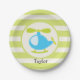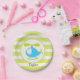 Niedlicher Blue Toy Helicopter auf Kalkgrün Streif Pappteller